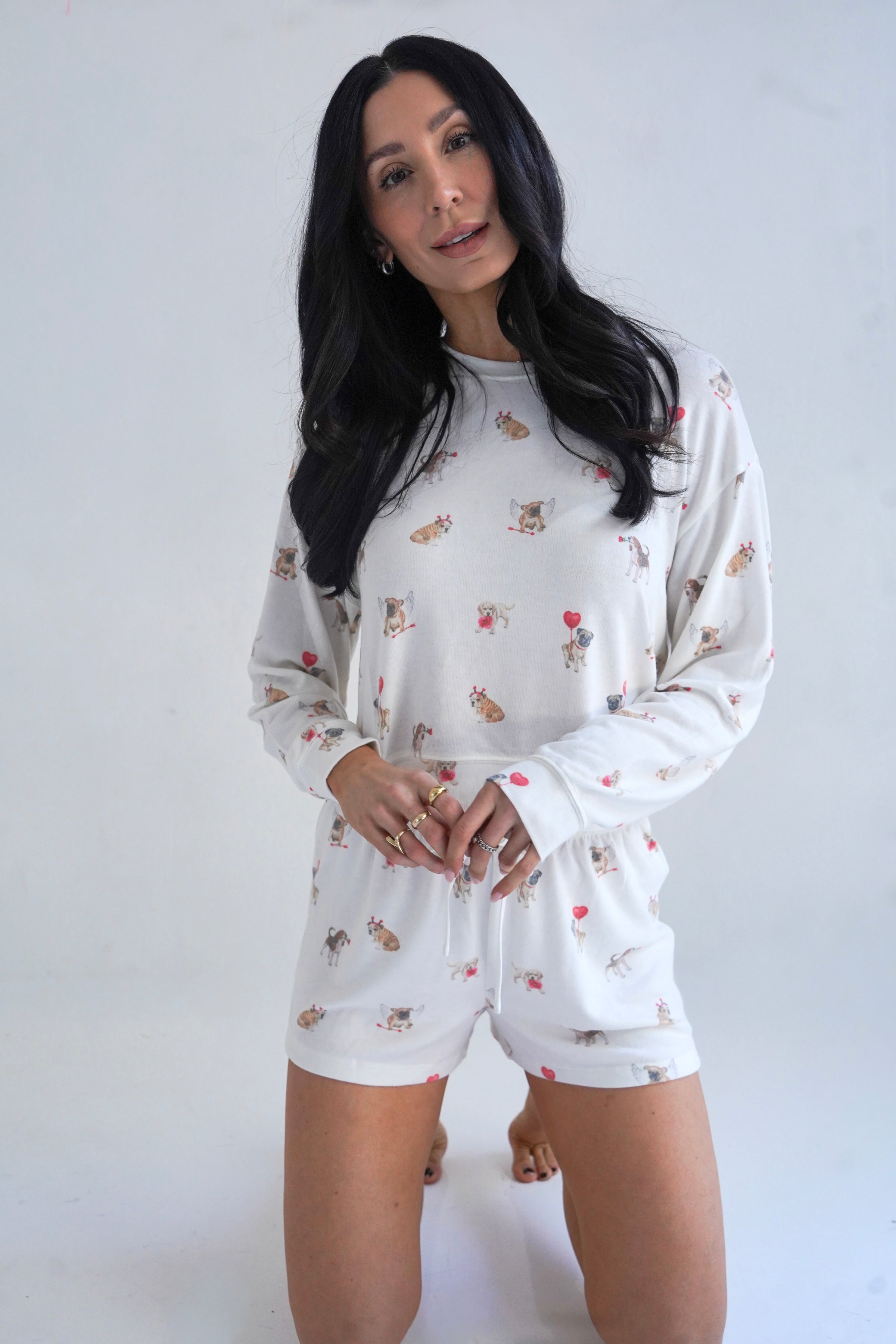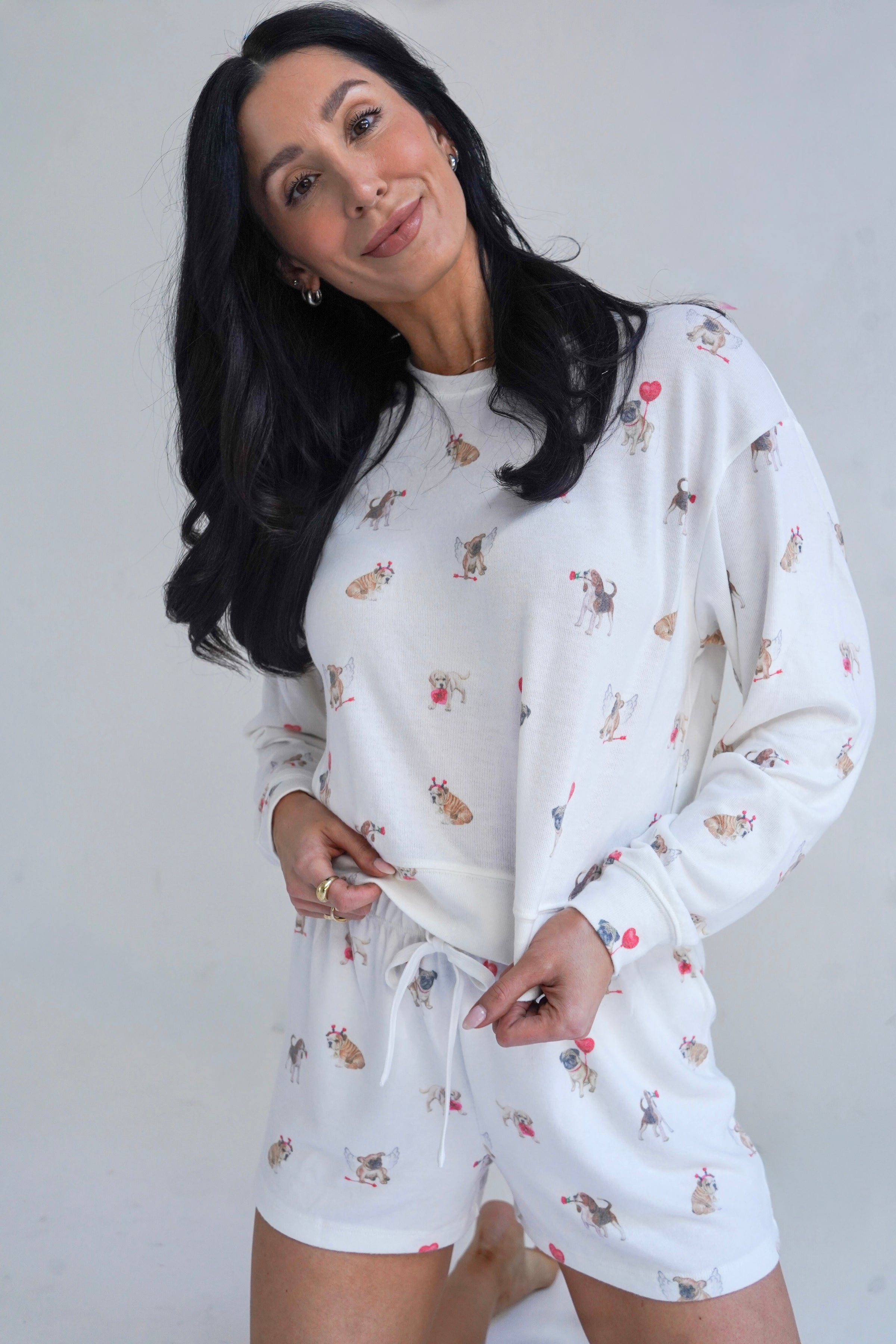 Sweet, comfy, and made for slow mornings. These lightweight lounge shorts are crafted from a soft brushed sweater knit and finished with a high-rise fit and adjustable drawcord waist for all-day comfort. Easy to wear and easy to love, they’re perfect for sleeping in, lounging around, or pairing with the matching top.