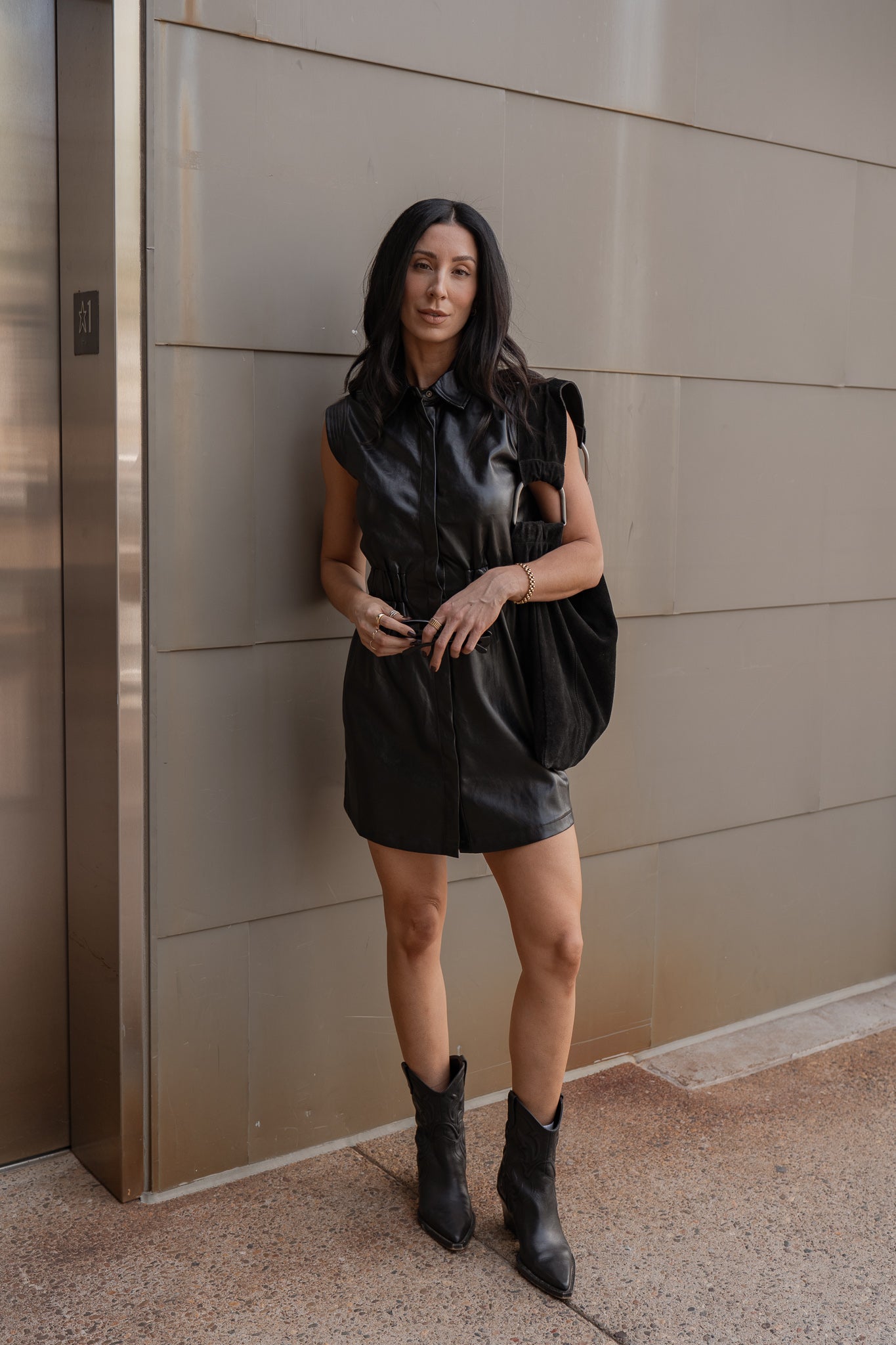 Turn heads in the Faux Leather Dress, a sleek and edgy mini that blends bold style with effortless comfort. Designed with a sleeveless silhouette and elastic waistband for a flattering fit, this coated dress gives you that luxe leather look.
