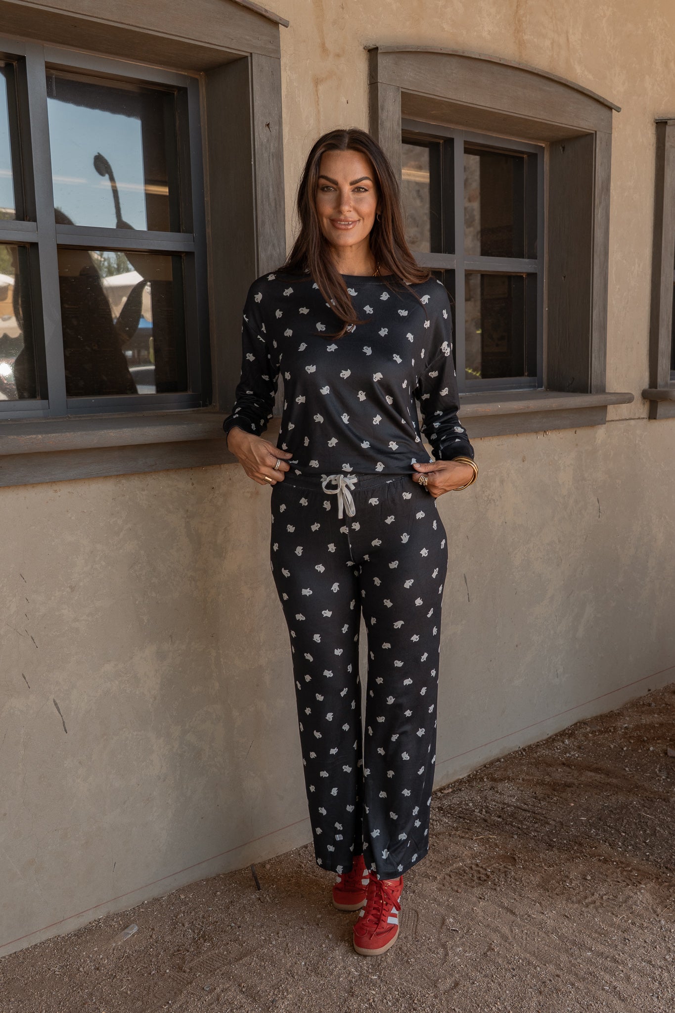 Lightweight and buttery-soft, this heart-print pullover brings the love. The relaxed fit and classic crew neckline make it sweet, simple, and seriously comfy.