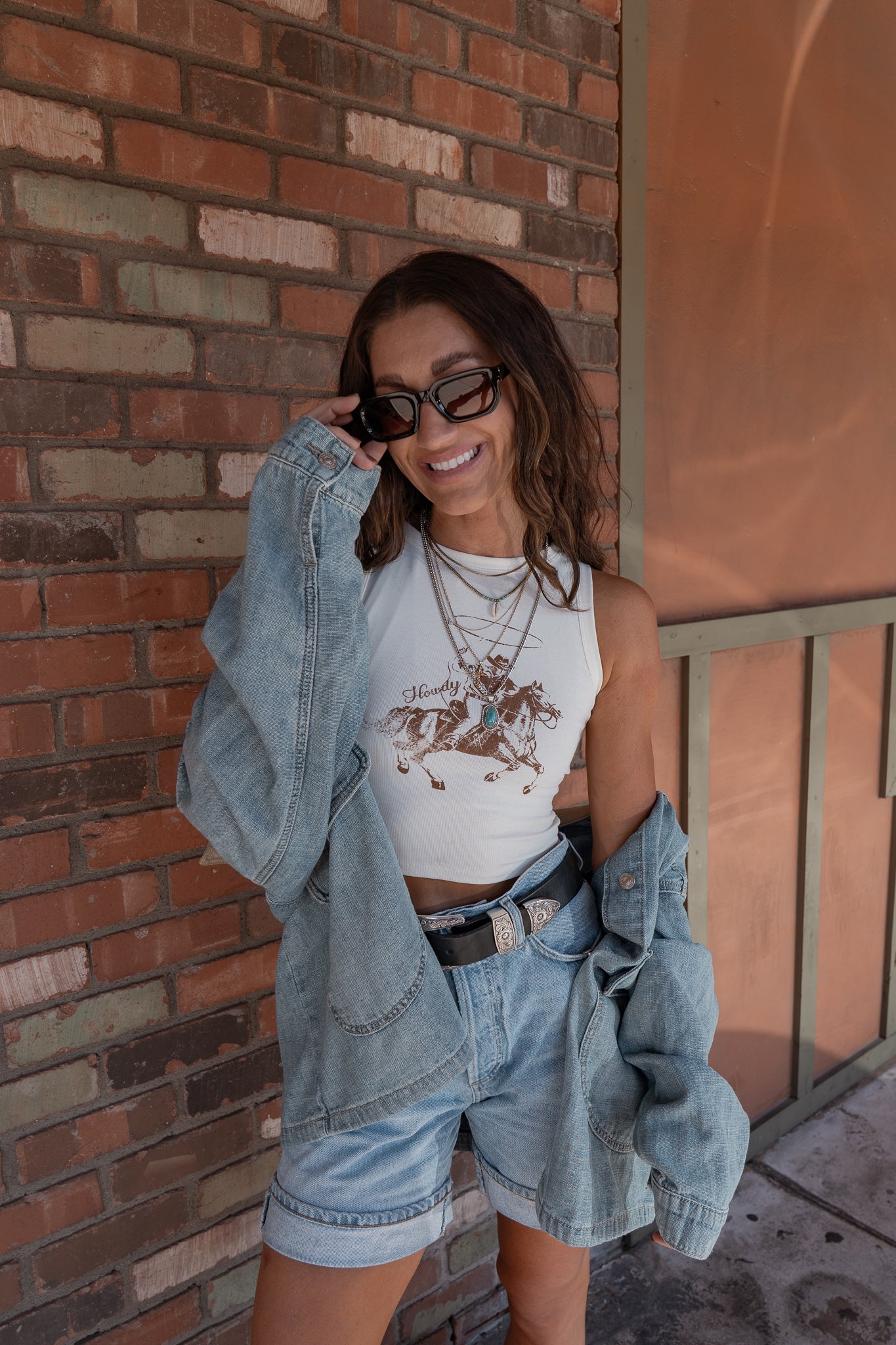 Say hello to your new favorite statement piece — the Howdy Tank brings a Western edge to your everyday look. Designed with a round neckline and cropped fit, this sleeveless knit top features a vintage-style Howdy graphic that’s perfect for rodeo days or casual weekends.