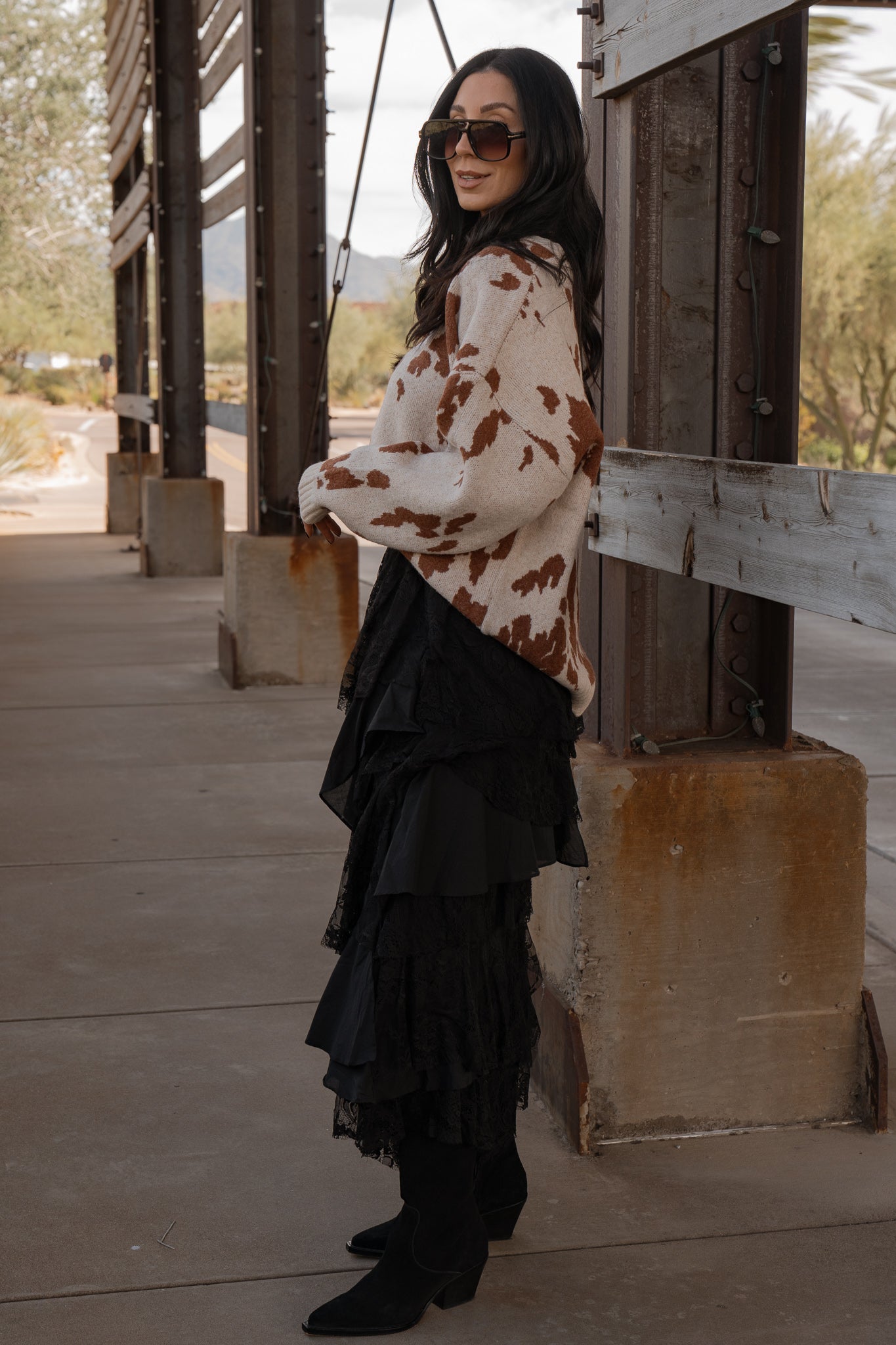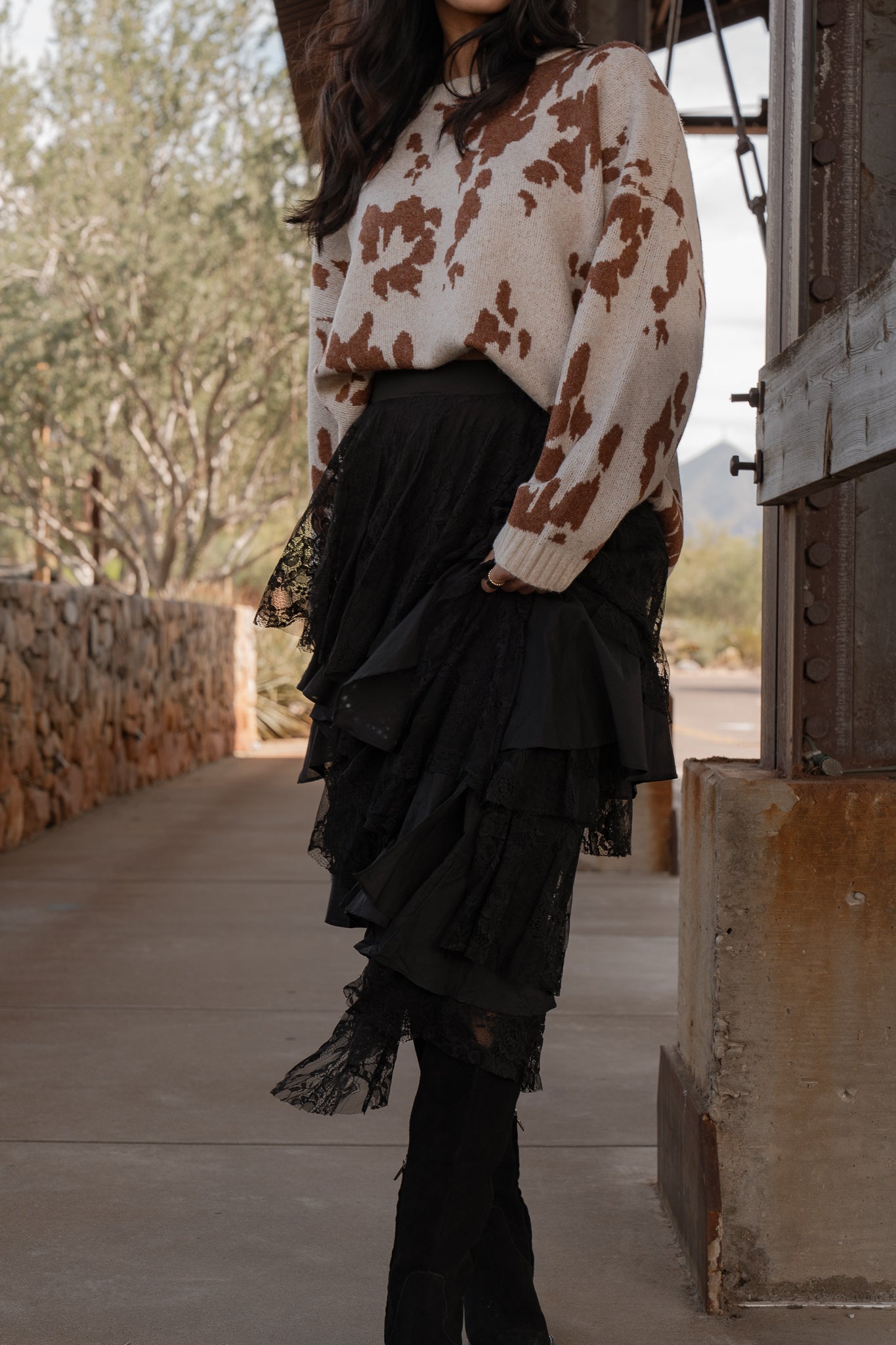 The Lacy Tiered Maxi Skirt keeps it simple but makes a statement. Made from soft woven cotton with tiered ruffles and subtle lace trim, it moves easily without feeling overdone. Finished with a comfortable elastic waistband and full cotton lining for an easy, effortless fit.