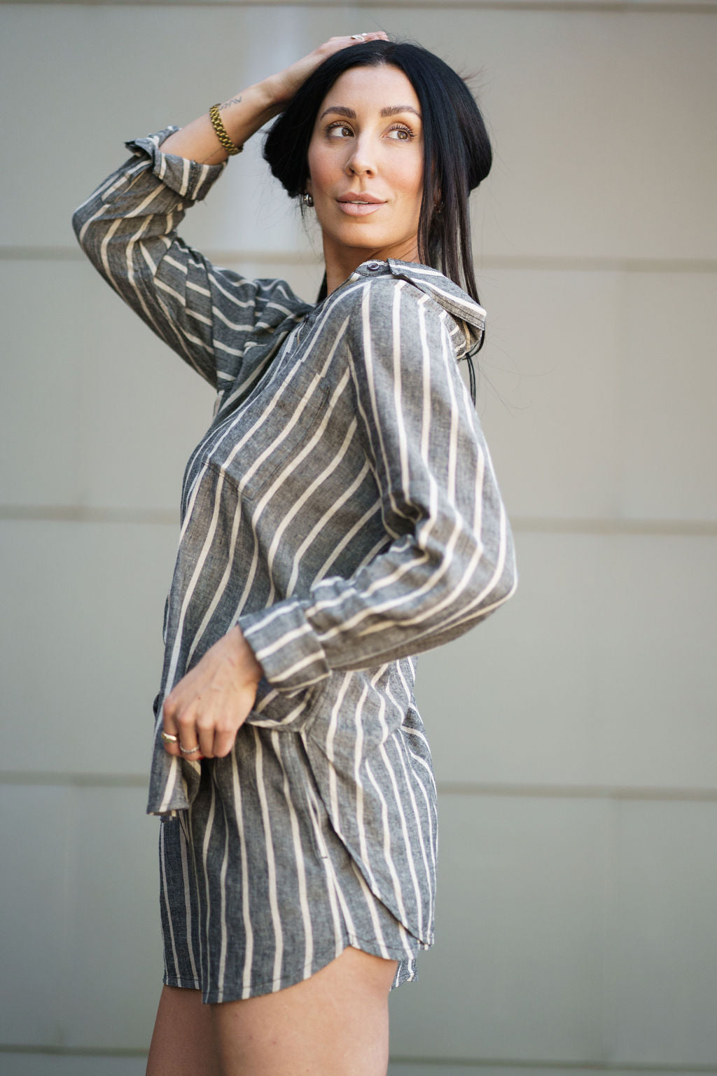 A lightweight linen-blend short designed for easy everyday wear. This striped style features a high-rise elastic waistband with an adjustable drawstring and side pockets for a relaxed, comfortable fit. Pair it with the matching top for an effortless set.
