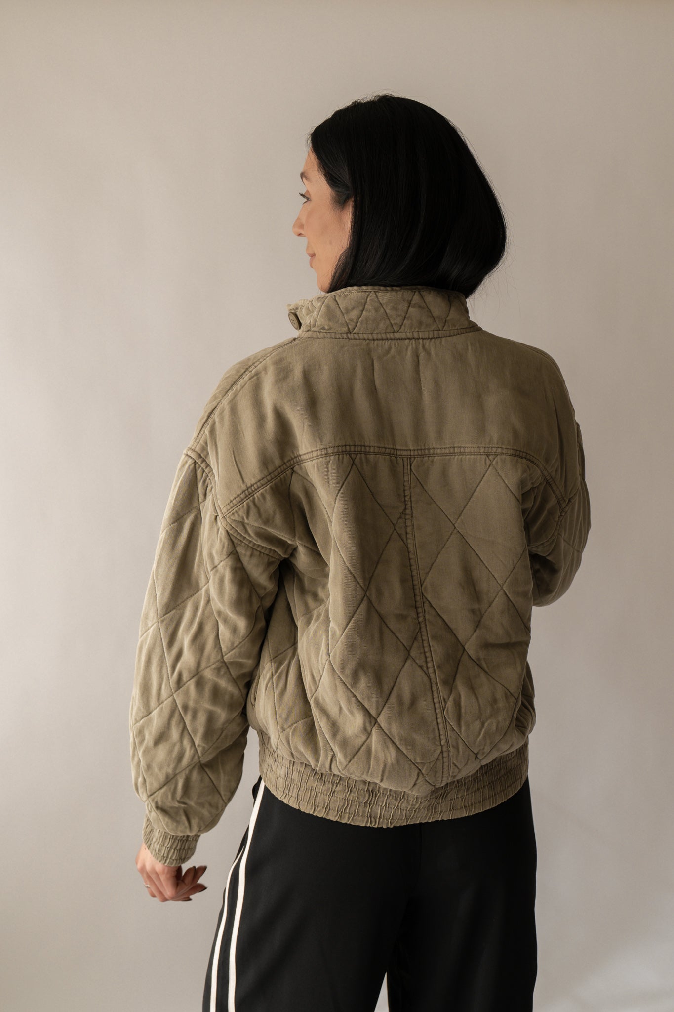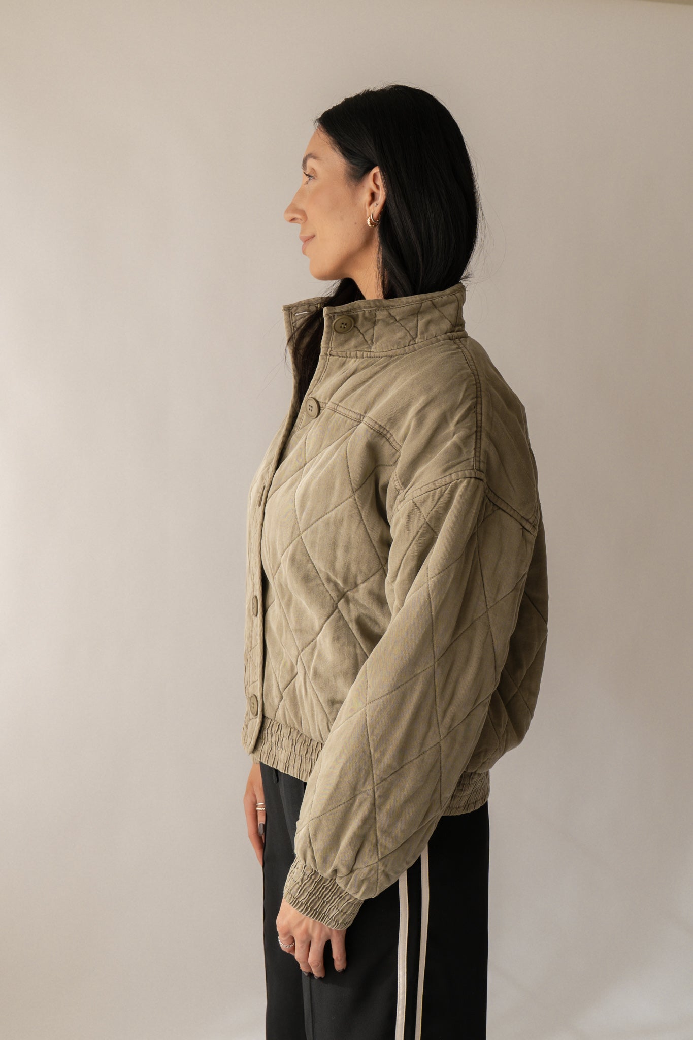 Slate Quilted Jacket, your new favorite layer for those ever-changing seasons. Crafted from soft quilted fabric, this jacket offers cozy warmth with a chic edge. The front zipper closure and side slant pockets add both function and style, while the elastic hem at the back ensures a flattering, tailored fit. Perfect for layering over your favorite dresses or pairing with your go-to jeans, the Slate Quilted Jacket seamlessly transitions from cool mornings to crisp evenings.